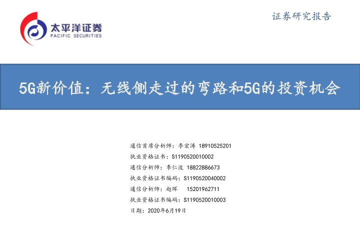 【太平洋证券】【20200619】5G新价值:无线侧走过的弯路和5G的投资机会-61页