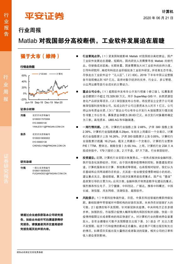 【平安证券】【20200621】计算机行业周报:Matlab对我国部分高校断供,工业软件发展迫在眉睫-6页