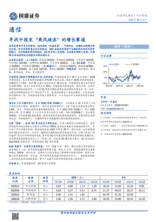 【国盛证券】【20200621】20200621-国盛证券-通信行业周报:寻找中报里“乘风破浪”的增长赛道-12页