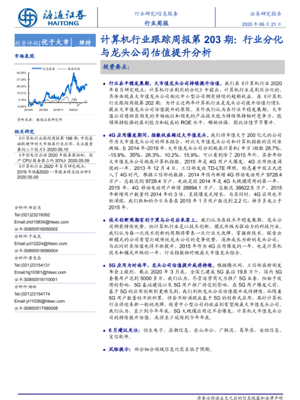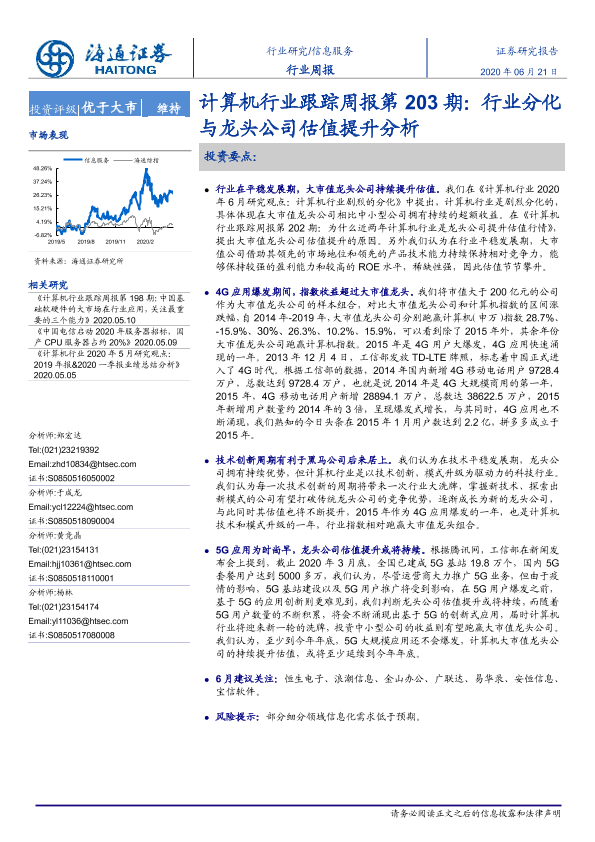 【海通证券】【20200621】计算机行业跟踪周报第203期:行业分化与龙头公司估值提升分析-4页