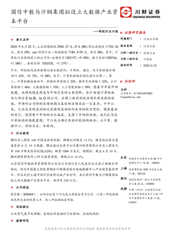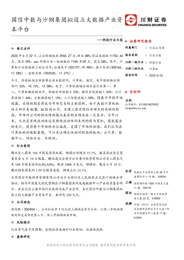 【川财证券】【20200622】科技行业日报:国信中数与沙钢集团拟设立大数据产业资本平台-3页