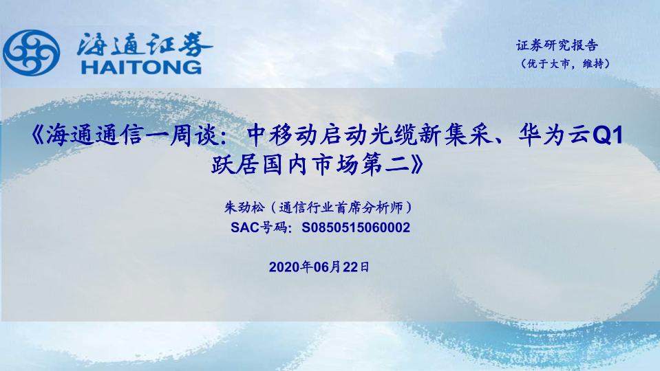 【海通证券】【20200622】海通通信一周谈:中移动启动光缆新集采、华为云Q1跃居国内市场第二-10页