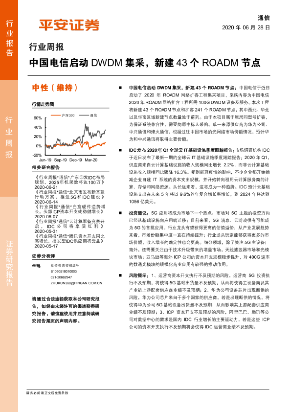 【平安证券】【20200628】通信行业周报:中国电信启动DWDM集采,新建43个ROADM节点-5页