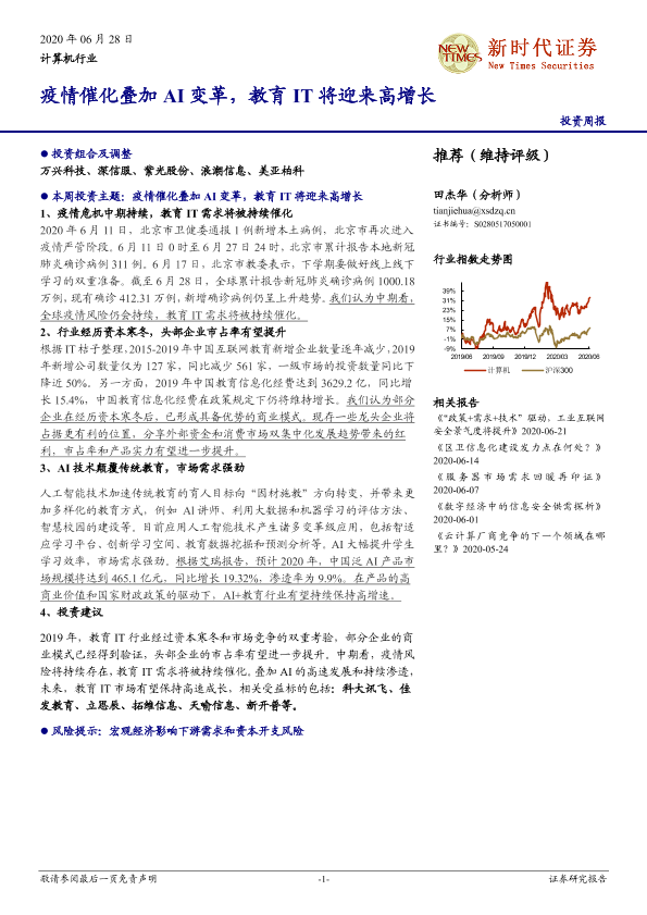 AI变革 投资周报 教育IT 疫情催化 高增长