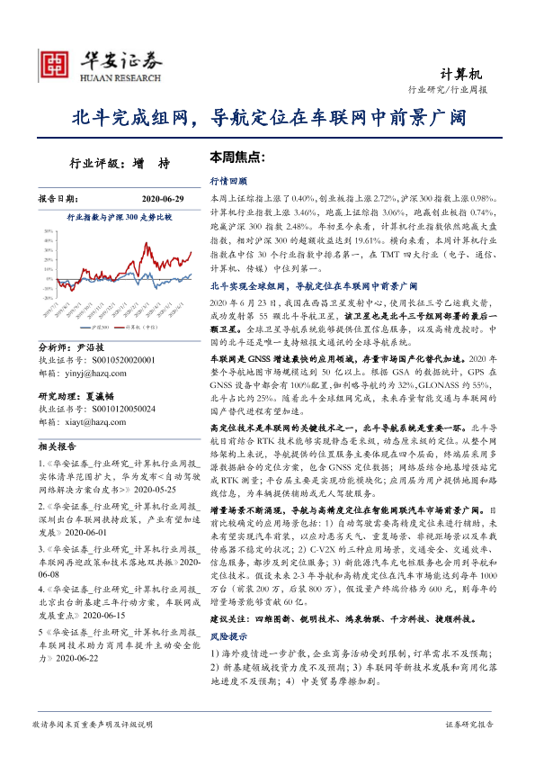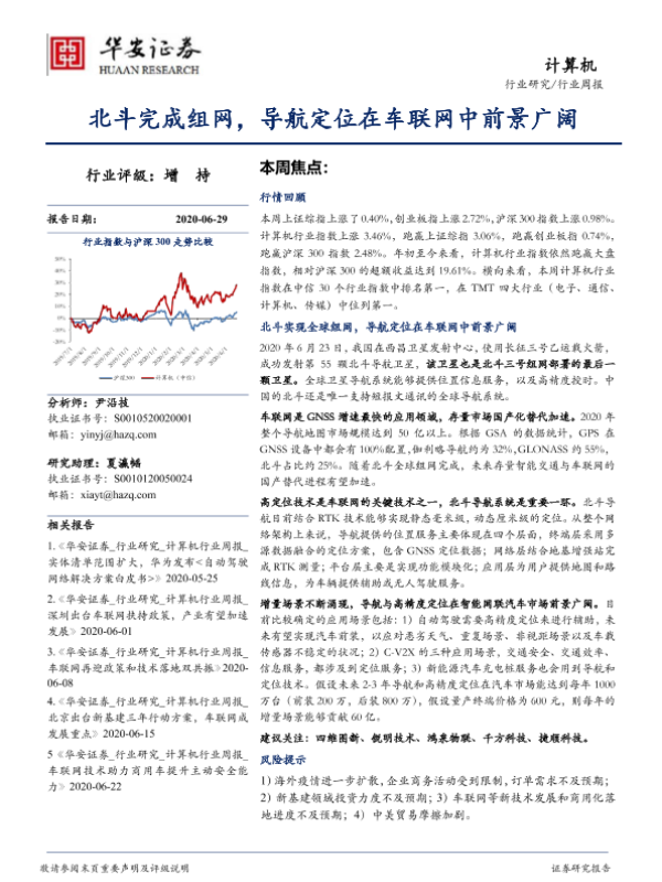 【华安证券】【20200629】20200629-华安证券-计算机行业周报:北斗完成组网,导航定位在车联网中前景广阔-13页