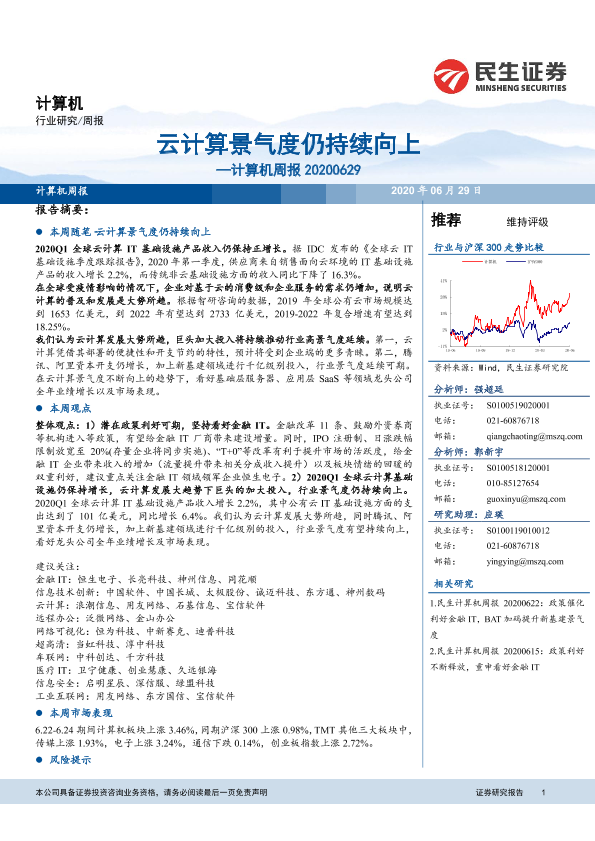 【民生证券】【20200629】20200629-民生证券-计算机周报:云计算景气度仍持续向上-18页