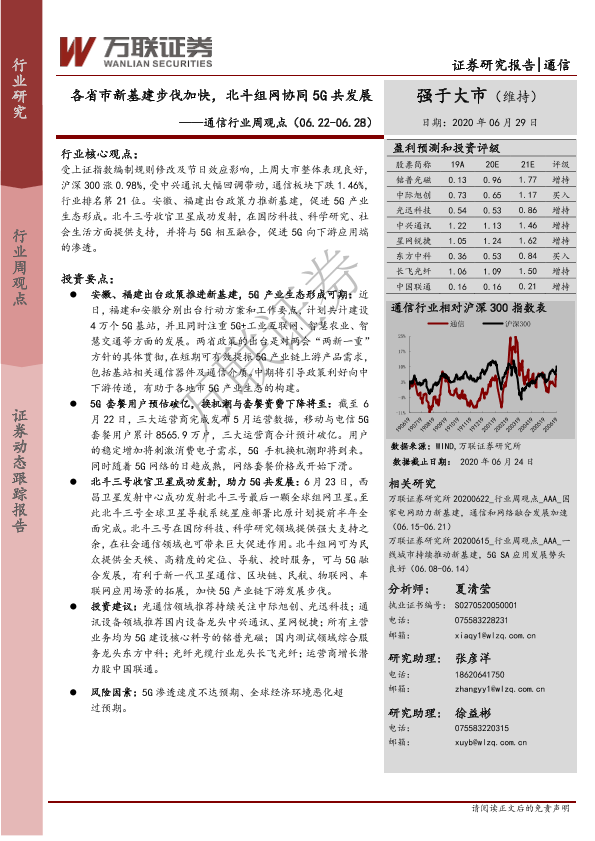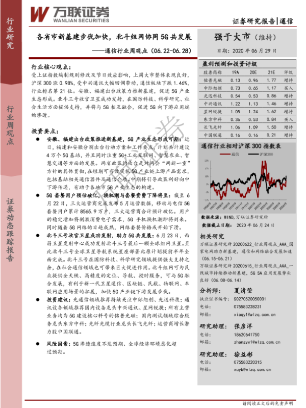【万联证券】【20200629】20200629-万联证券-通信行业周观点:各省市新基建步伐加快,北斗组网协同5G共发展-13页