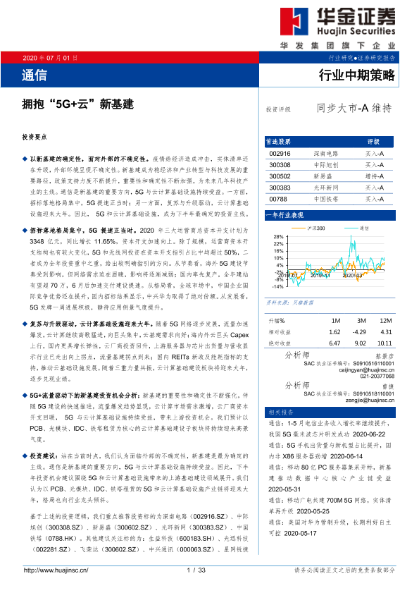 【华金证券】【20200701】通信行业中期策略:拥抱“5G+云”新基建-33页