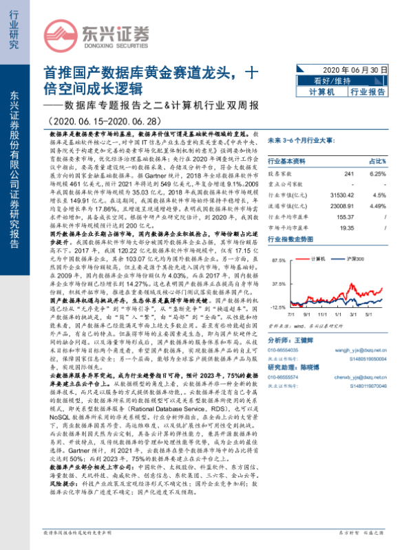 【东兴证券】【20200630】20200630-东兴证券-数据库专题报告之二&计算机行业双周报:首推国产数据库黄金赛道龙头,十倍空间成长逻辑-69页