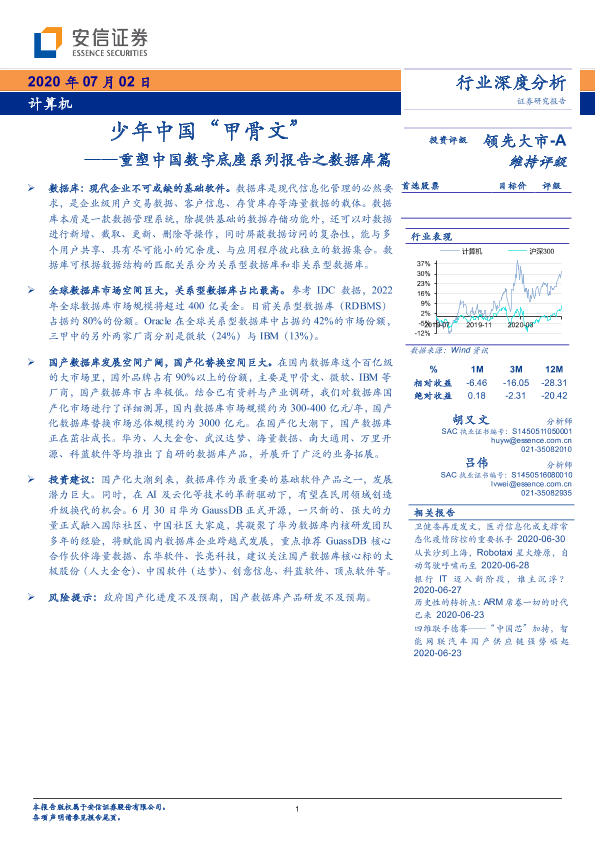 【安信证券】【20200702】少年中国“甲骨文”——重塑中国数字底座系列报告之数据库篇-22页