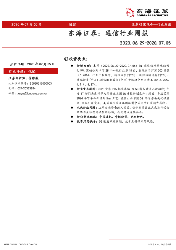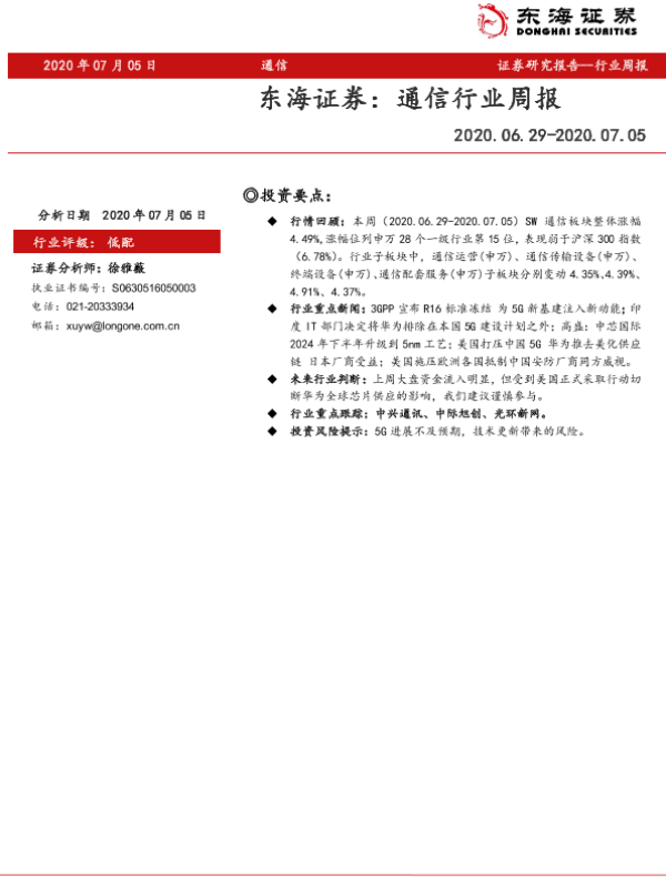 【东海证券】【20200705】20200705-东海证券-通信行业周报-6页