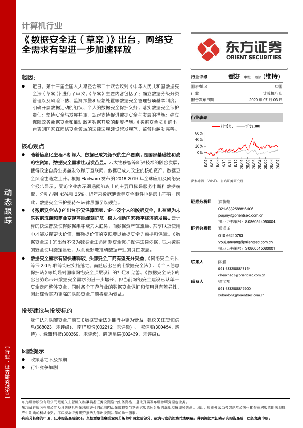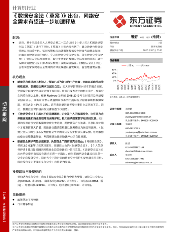 【东方证券】【20200703】计算机行业动态跟踪:《数据安全法(草案)》出台,网络安全需求有望进一步加速释放-3页