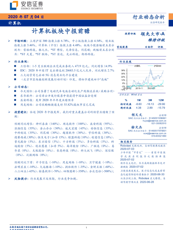中报前瞻 投资建议 股市分析 行业动态 计算机