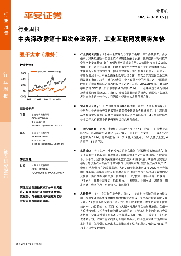 【平安证券】【20200705】计算机行业周报:中央深改委第十四次会议召开,工业互联网发展将加快-5页