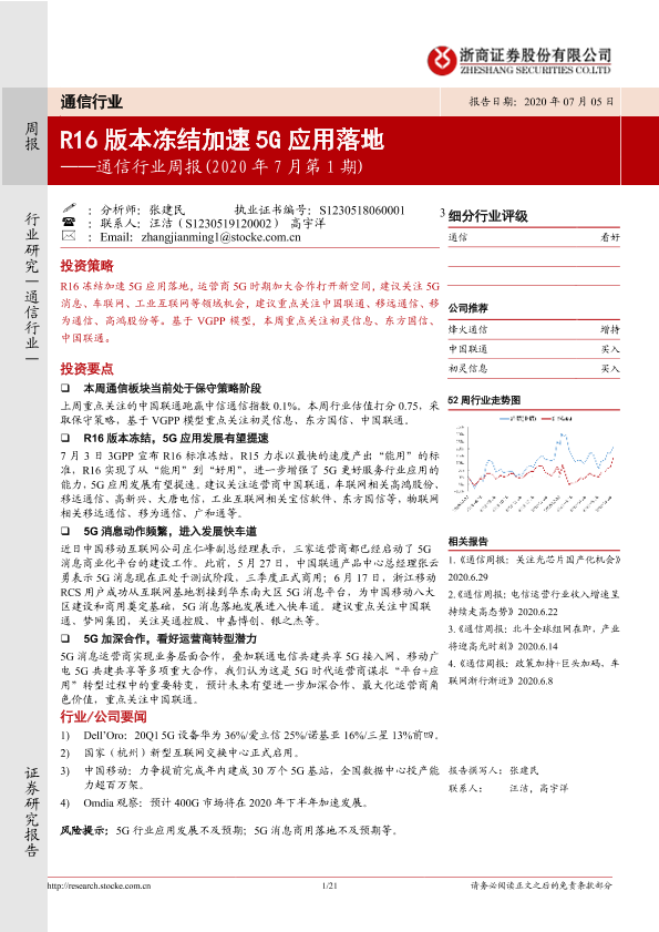 【浙商证券】【20200705】通信行业周报(2020年7月第1期):R16版本冻结加速5G应用落地-21页