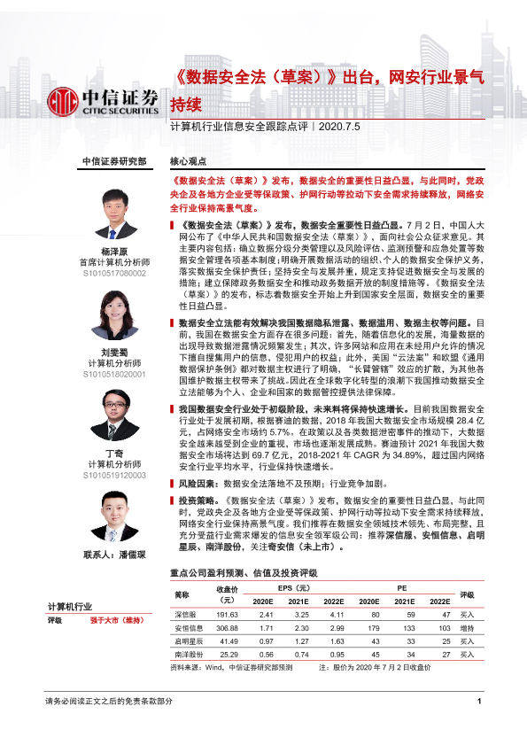 【中信证券】【20200705】计算机行业信息安全跟踪点评:《数据安全法(草案)》出台,网安行业景气持续-2页