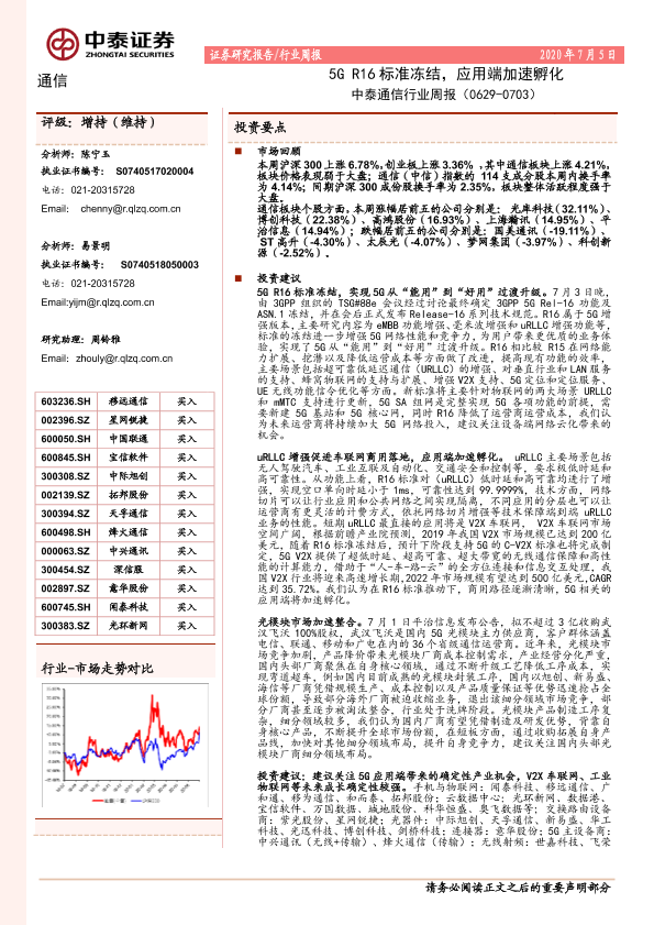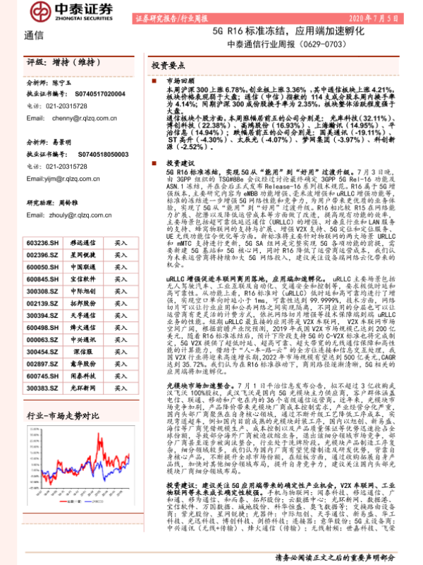 【中泰证券】【20200705】中泰通信行业周报:5GR16标准冻结,应用端加速孵化-16页