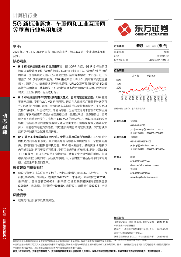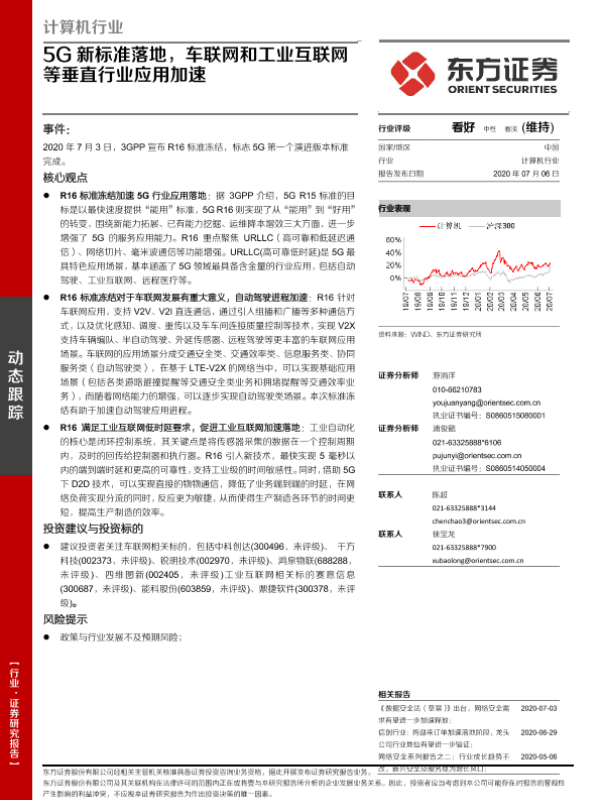 【东方证券】【20200706】计算机行业:5G新标准落地,车联网和工业互联网等垂直行业应用加速-3页
