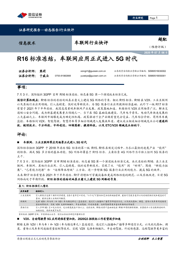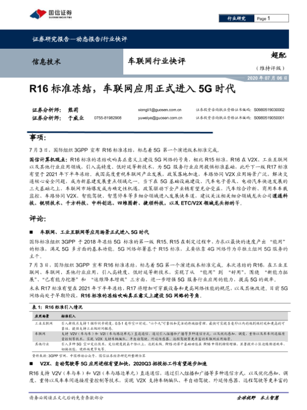 【国信证券】【20200706】车联网行业快评:R16标准冻结,车联网应用正式进入5G时代-4页