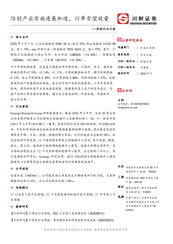 【川财证券】【20200707】科技行业日报:信创产业实施进展加速,订单有望放量-3页