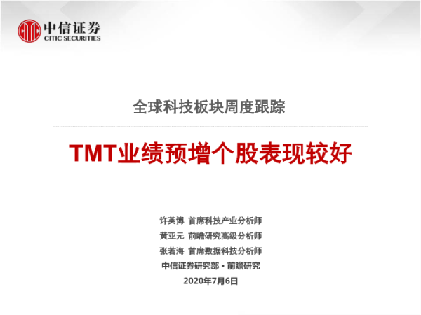 【中信证券】【20200706】全球科技板块周度跟踪:TMT业绩预增个股表现较好-38页