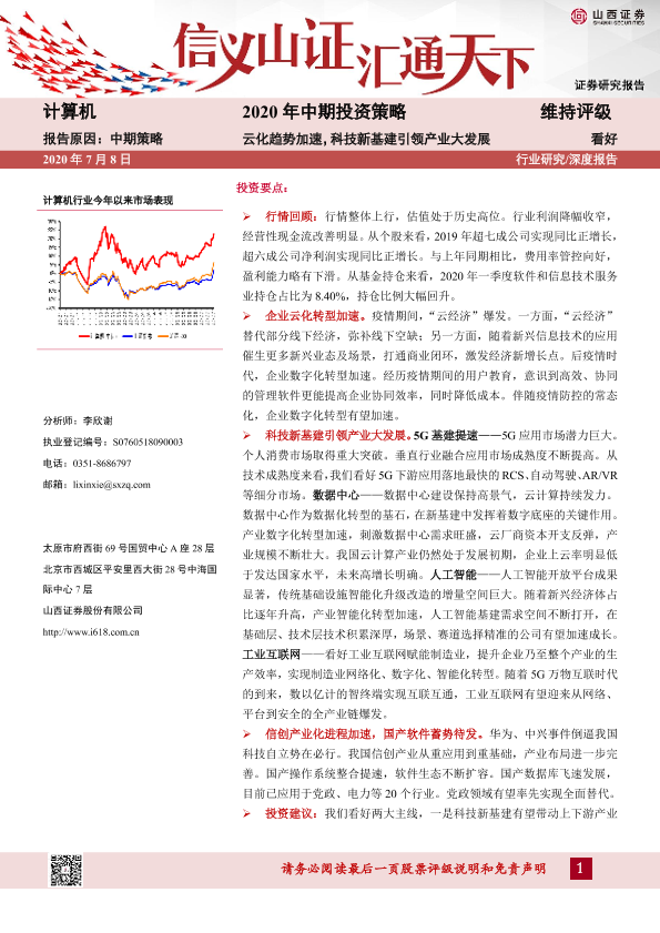【山西证券】【20200708】计算机2020年中期投资策略:云化趋势加速,科技新基建引领产业大发展-44页
