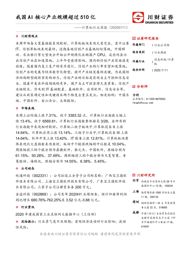 【川财证券】【20200711】20200711-川财证券-计算机行业周报:我国AI核心产业规模超过510亿-8页