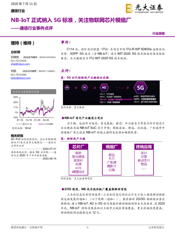 【光大证券】【20200711】通信行业事件点评:NB-IoT正式纳入5G标准,关注物联网芯片模组厂-3页