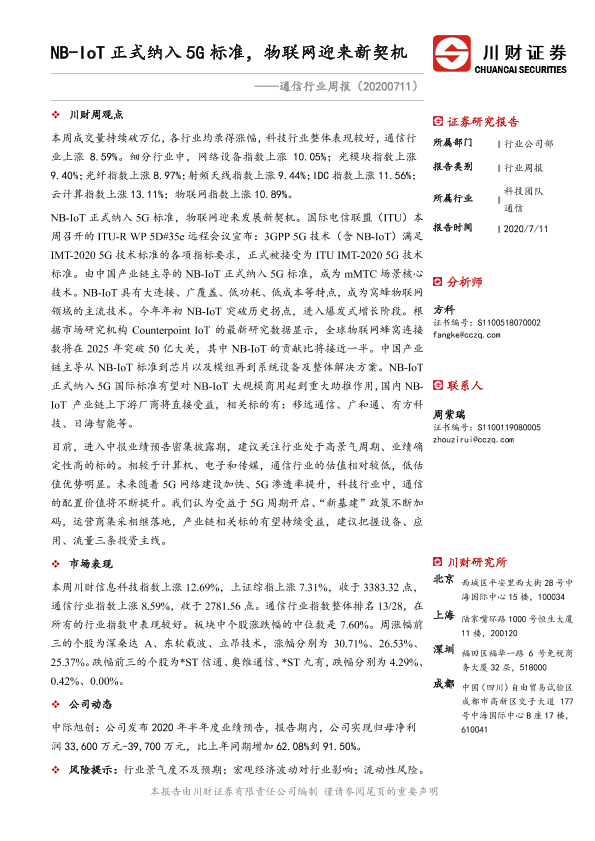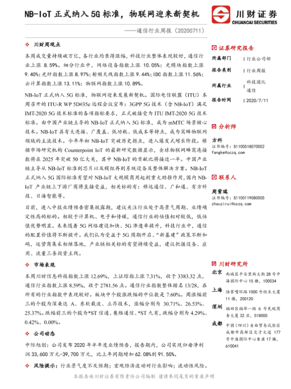 【川财证券】【20200711】NB-IoT正式纳入5G标准,物联网迎来新契机-11页