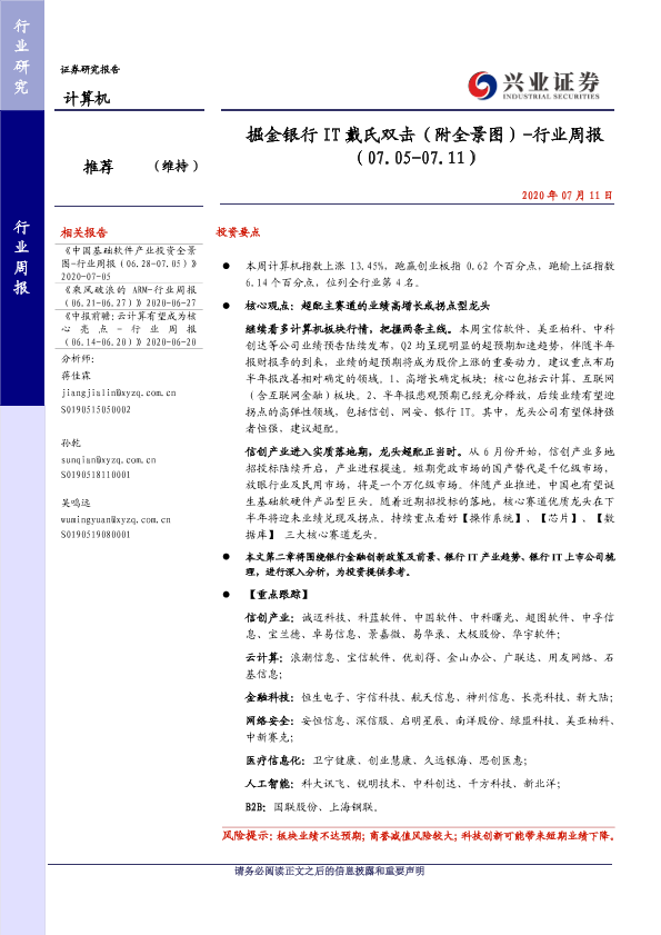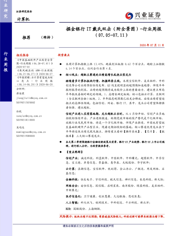 【兴业证券】【20200711】20200711-兴业证券-计算机行业周报:掘金银行IT戴氏双击(附全景图)-33页