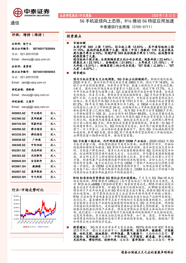 【中泰证券】【20200712】中泰通信行业周报:5G手机延续向上态势,R16推动5G特征应用加速-19页