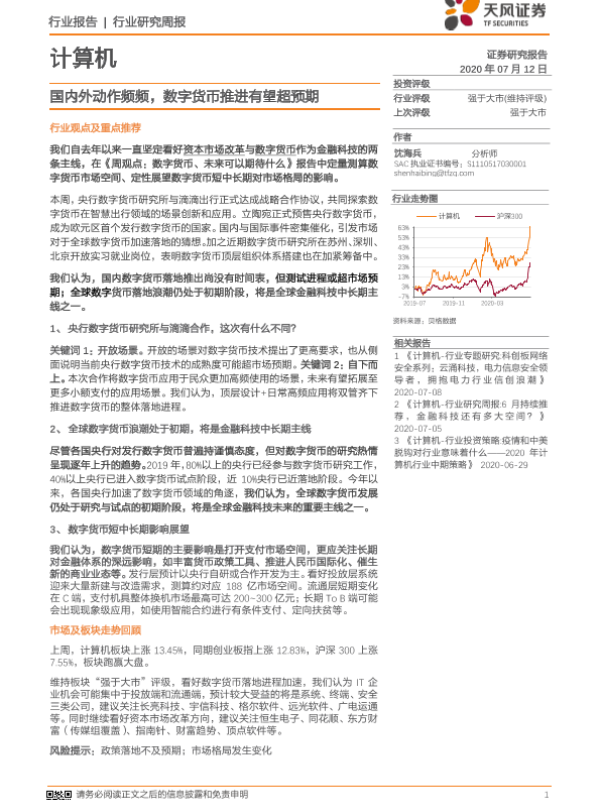 【天风证券】【20200712】计算机行业研究周报:国内外动作频频,数字货币推进有望超预期-7页
