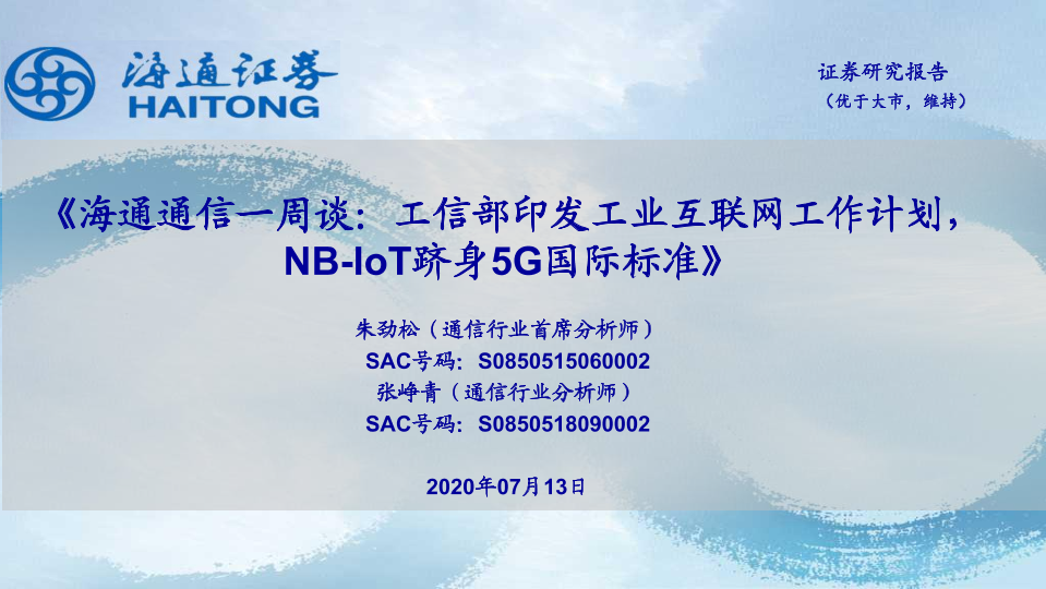 【海通证券】【20200713】海通通信一周谈:工信部印发工业互联网工作计划,NB-IoT跻身5G国际标准-10页