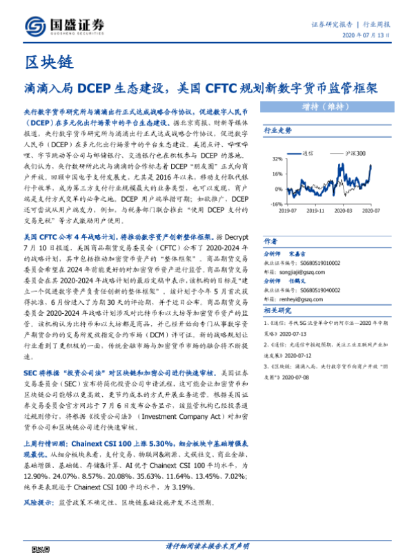 【国盛证券】【20200713】区块链行业周报:滴滴入局DCEP生态建设,美国CFTC规划新数字货币监管框架-9页