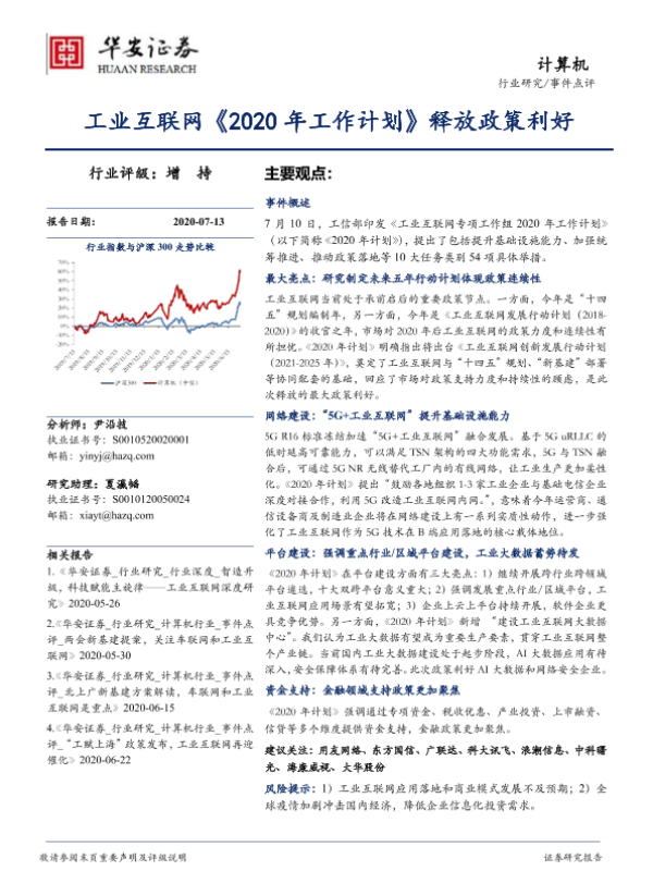 【华安证券】【20200713】计算机:工业互联网《2020年工作计划》释放政策利好-18页