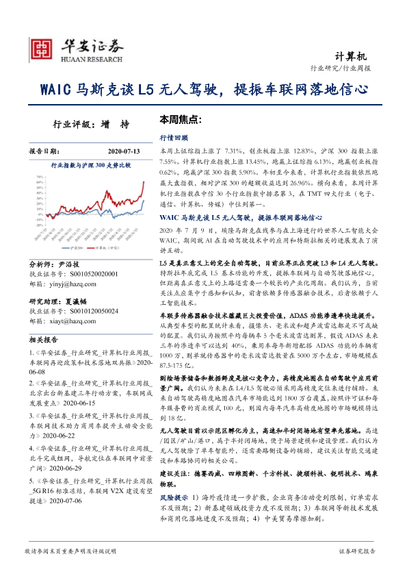 【华安证券】【20200713】20200713-华安证券-计算机行业周报:WAIC马斯克谈L5无人驾驶,提振车联网落地信心-15页
