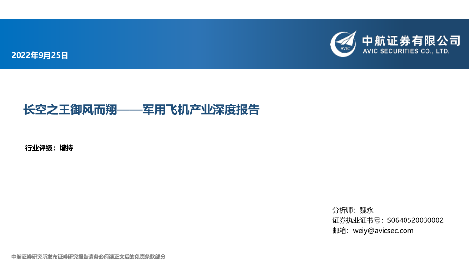【中航证券】【20220925】军用飞机行业产业深度报告:长空之王御风而翔-28页