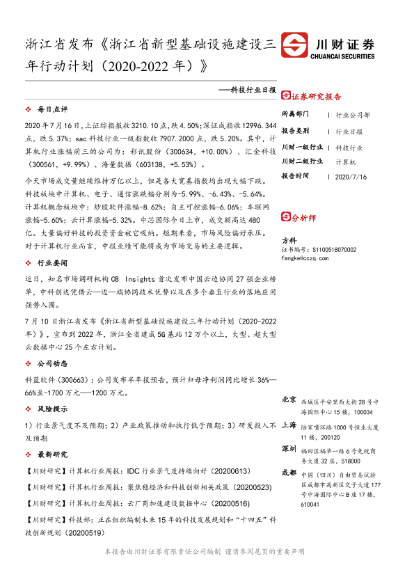 【川财证券】【20200716】浙江省发布《浙江省新型基础设施建设三年行动计划(2020-2022年)》-3页