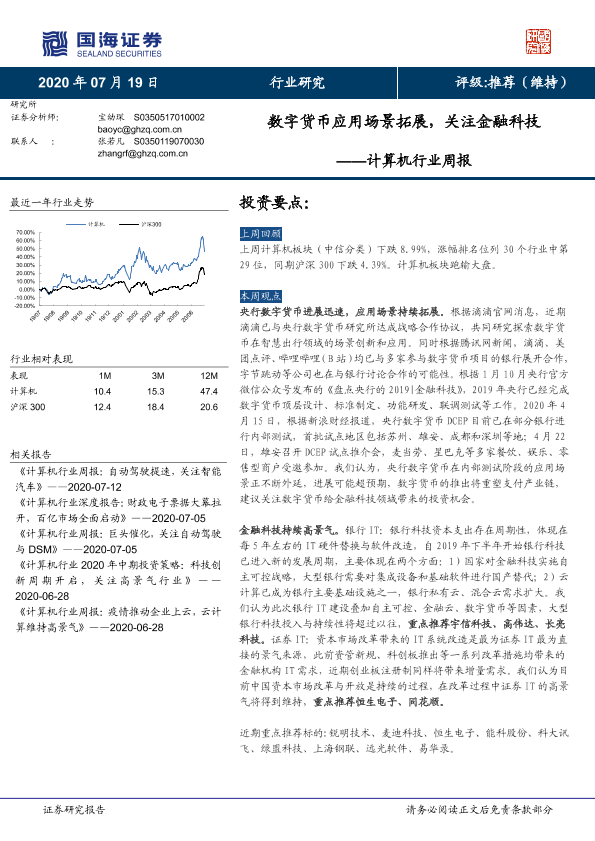 【国海证券】【20200719】计算机行业周报:数字货币应用场景拓展,关注金融科技-16页