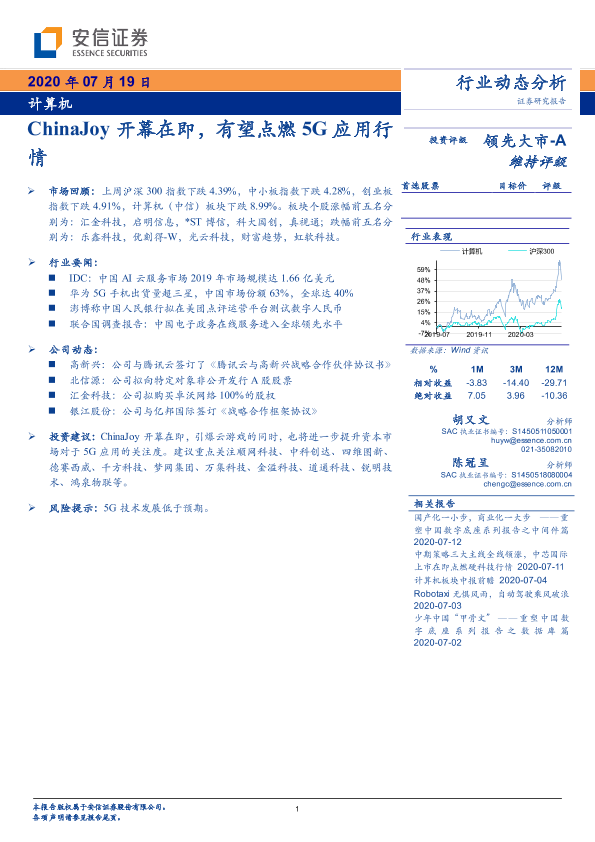 【安信证券】【20200719】ChinaJoy开幕在即,有望点燃5G应用行情-14页
