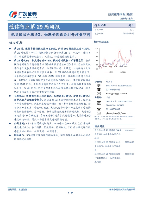 【广发证券】【20200719】通信行业第29周周报:轨交通信升级5G,铁路专网设备打开增量空间-17页