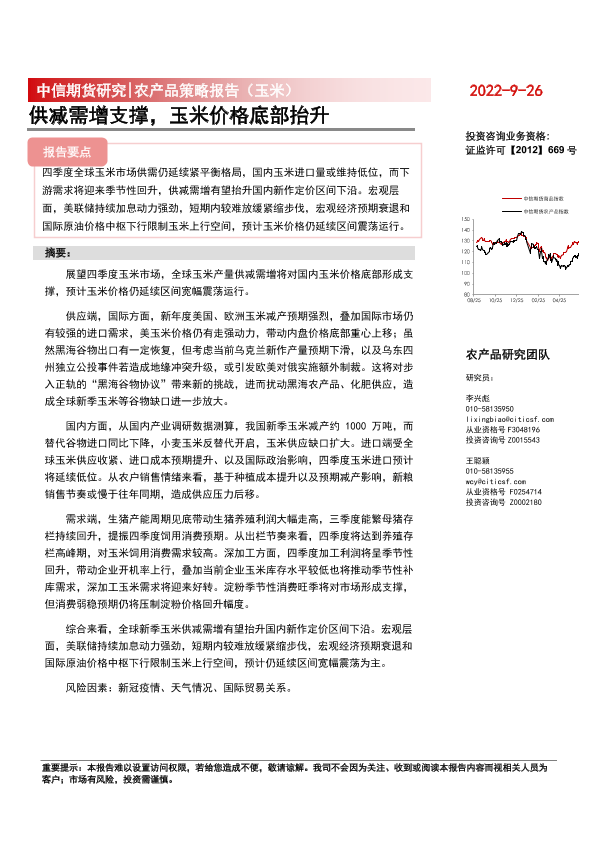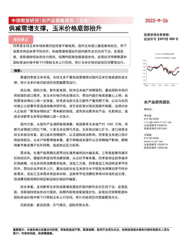 【中信期货】【20220926】农产品策略报告(玉米):供减需增支撑,玉米价格底部抬升-21页
