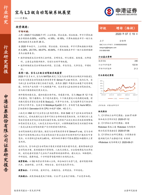 【申港证券】【20200719】计算机行业研究周报:宝马L3级自动驾驶系统展望-13页