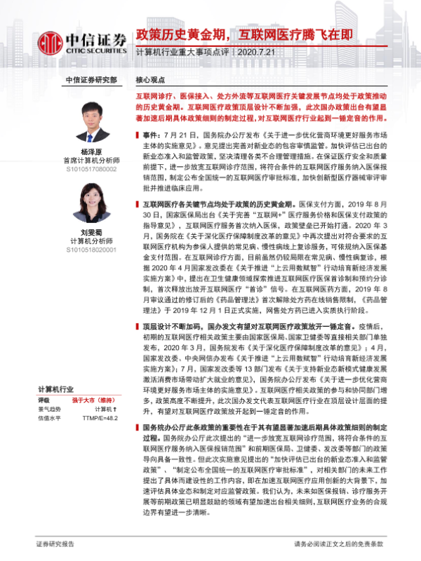 【中信证券】【20200721】计算机行业重大事项点评:政策历史黄金期,互联网医疗腾飞在即-4页