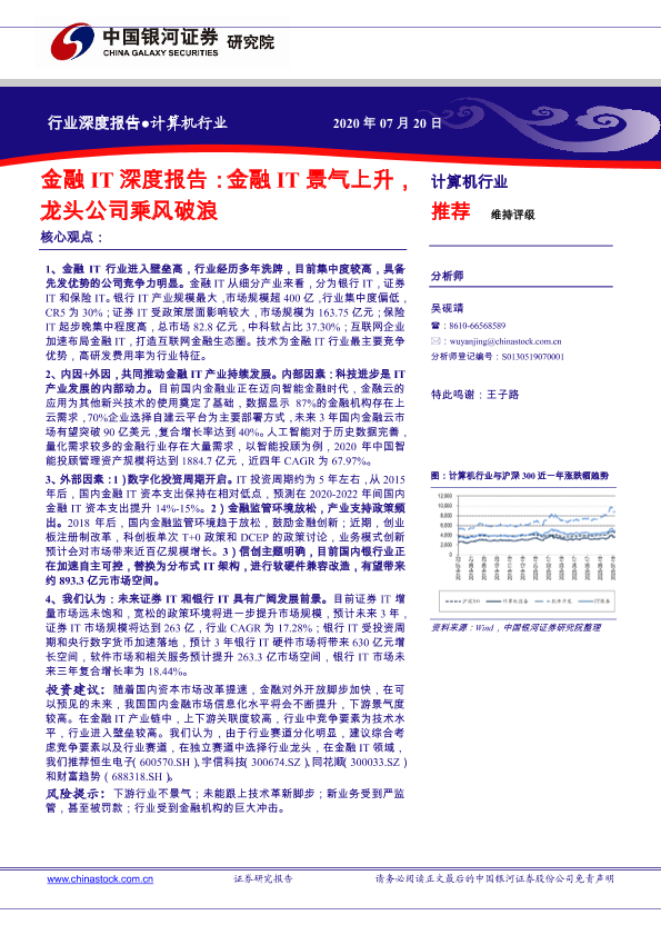 【银河证券】【20200720】计算机行业:金融IT深度报告:金融IT景气上升,龙头公司乘风破浪-36页