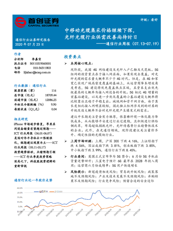 【首创证券】【20200723】20200723-首创证券-通信行业周报:中移动光缆集采价格继续下探,光纤光缆行业供需改善尚待时日-9页