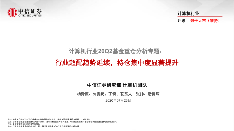 【中信证券】【20200723】计算机行业20Q2基金重仓分析专题:行业超配趋势延续,持仓集中度显著提升-15页