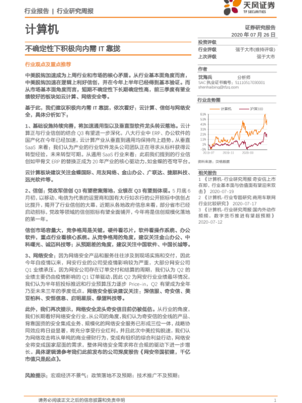 【天风证券】【20200726】20200726-天风证券-计算机行业研究周报:不确定性下积极向内需IT靠拢-8页