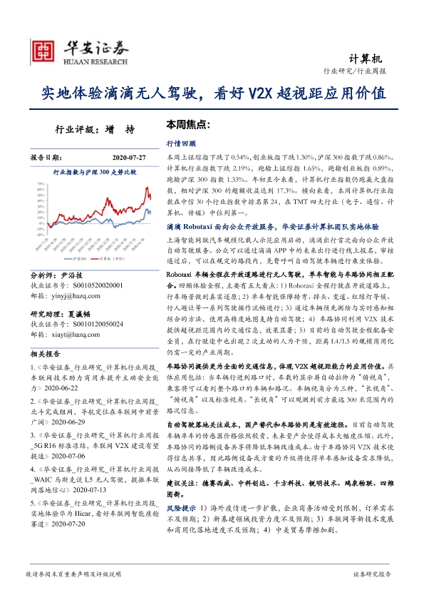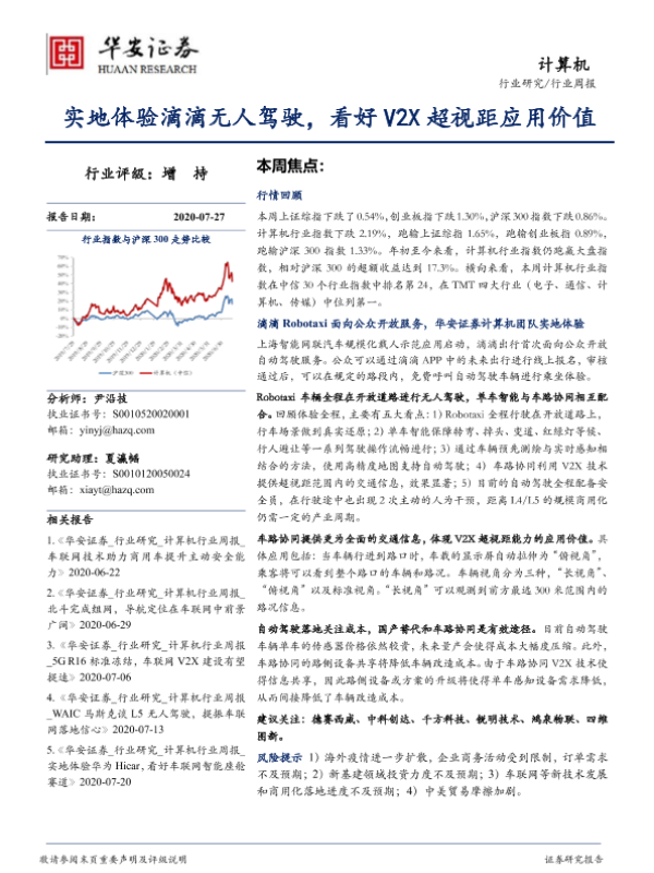 【华安证券】【20200727】计算机行业周报:实地体验滴滴无人驾驶,看好V2X超视距应用价值-15页