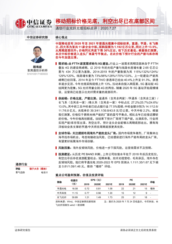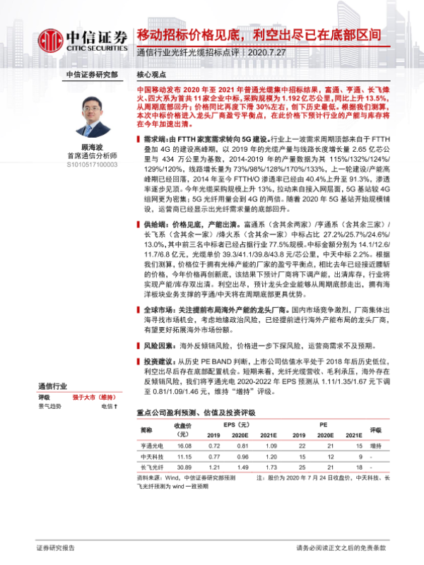 【中信证券】【20200727】通信行业光纤光缆招标点评:移动招标价格见底,利空出尽已在底部区间-2页
